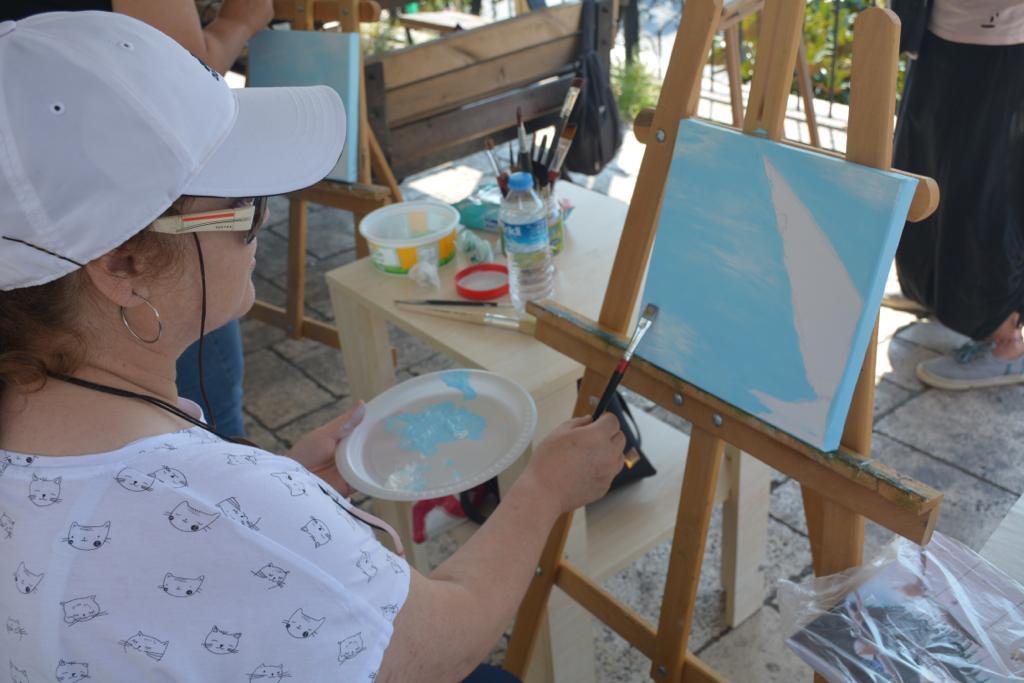 Mehtap Akdemir ve Kursiyerleri, Kdz. Ereğli’deki üç tepeden biri olan Göztepe’yi tuvale yansıttılar. Bir puzzle gibi 13 parça halinde yaptıkları tablo parçalarını gün sonunda birleştirerek çok çarpıcı bir eser ortaya çıkardılar. Birleştirilen tablo Karadeniz Ereğli Belediye Başkanı Halil Posbıyık’a hediye edildi.