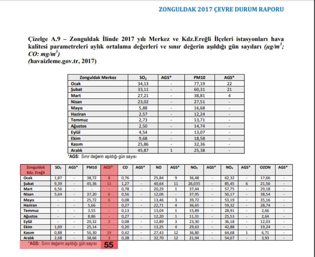 Zonguldak İl Çevre ve Şehircilik Müdürlüğü’nün 2018 yılında yayınladığı ‘Çevre Durum Raporu’na göre, Kdz. Ereğli 2017 yılında 55 gün zehir solumuş.