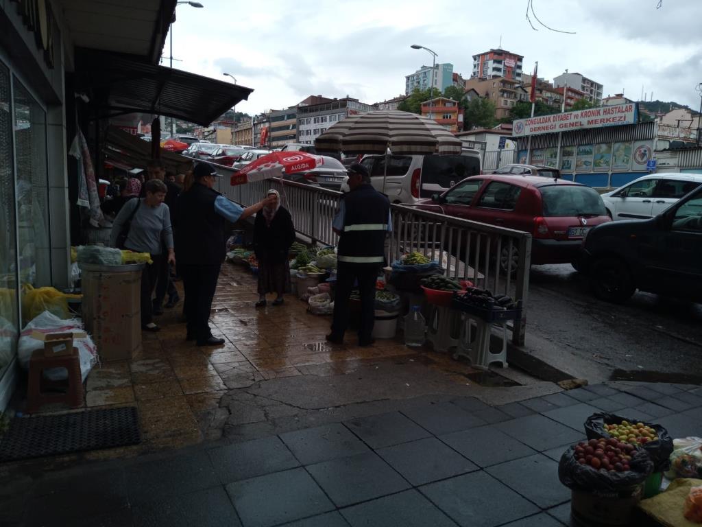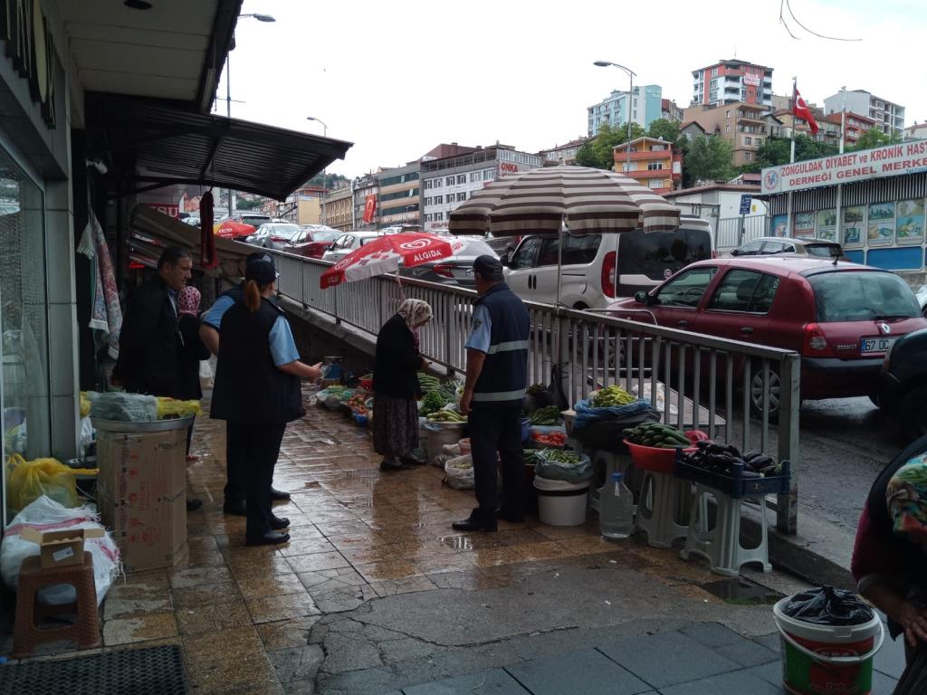 Zonguldak Merkez'de kaldırım işgali yapan seyyar satıcılar, cafeler ve çay ocaklarına denetim yapıldı.