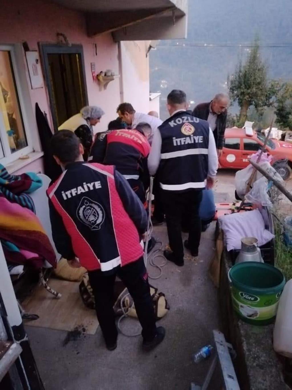 Olay, Kozlu ilçesi Kılıç Mahallesi Muhayyer Sokak'ta meydana geldi. Edinilen bilgiye göre, obezite nedeniyle yürüme yetisini kaybeden 60 yaşında 170 kilo ağırlığındaki Şahsene Akyüz, temiz hava almak için evinin önüne indi. Dışarıda biraz bulunduktan sonra tekrar evine gitmek isteyen yaşlı kadın bu sefer kiloları nedeniyle merdivenleri çıkamadı. Komşularının haber vermesi üzerine olay yerine itfaiye ekipleri çağrıldı. İtfaiye ekiplerinin uzun uğraşları sonucunda 170 kilo ağırlığındaki kadın sedye yardımıyla evine taşındı. İtfaiye ekiplerinin bu anlamlı davranışı mahalle sakinlerinden büyük beğeni topladı.