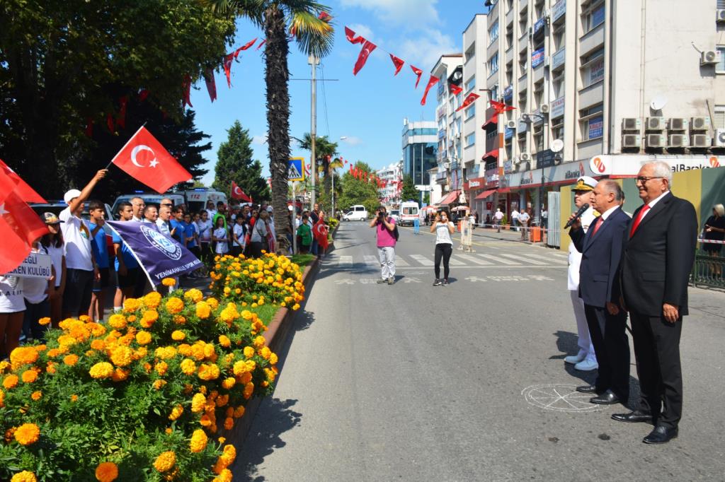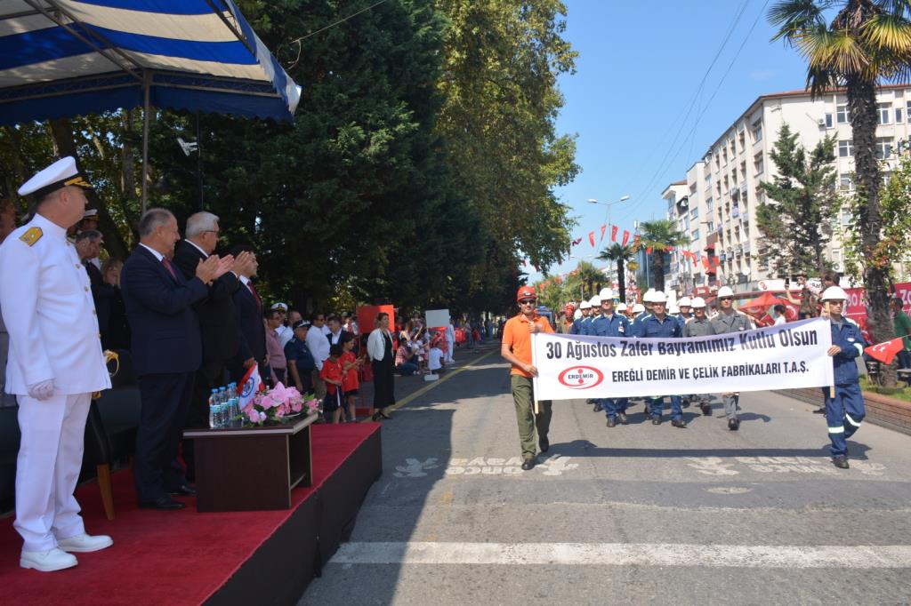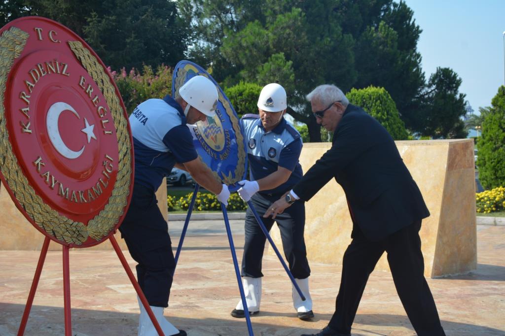 Zafer Bayramı etkinlikleri kapsamında ilk etkinlik Atatürk Anıtı önündeki meydanda çelenk sunma töreni oldu. Tören kapsamında Ereğli Kaymakamı İsmail Çorumluoğlu, Karadeniz Bölge ve Garnizon Komutanı Tuğamiral Hüseyin Sami Uyar ve Belediye Başkanı Halil Posbıyık Atatürk Anıtı’na çelenk sundu. Tören kapsamında saygı duruşunda bulunuldu, İstiklal Marşı okundu.