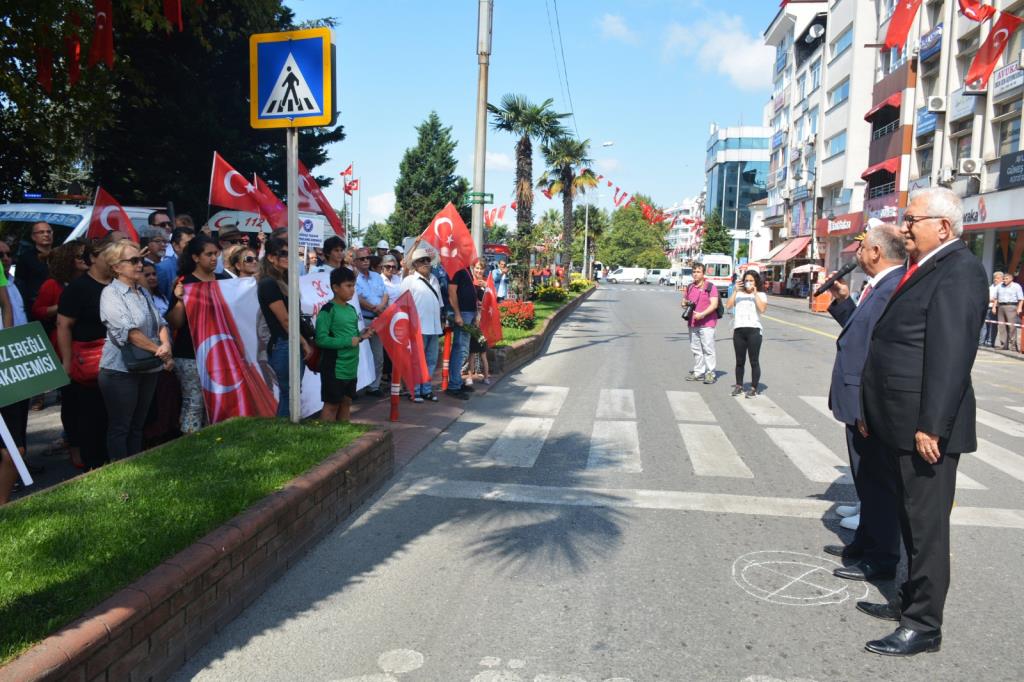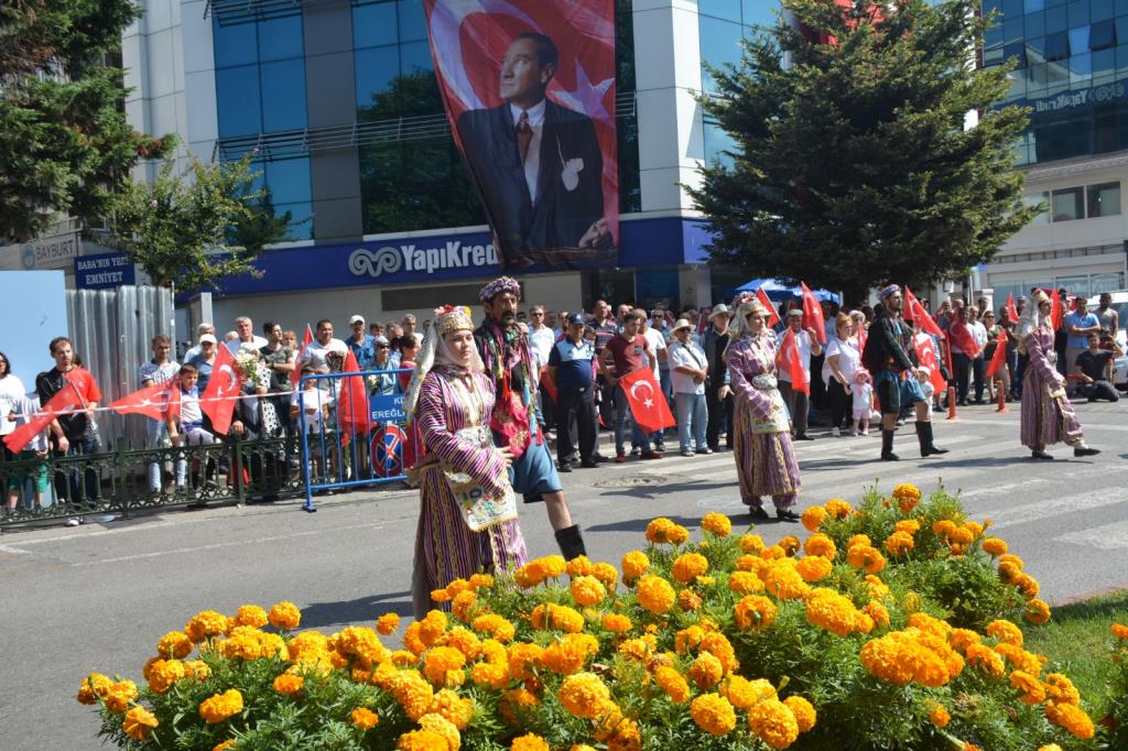 Karadeniz Ereğli’de 30 Ağustos Zafer Bayramı’nın 97. Yıldönümü dolayısıyla çelenk sunma töreni ve geçit töreni düzenlendi. Kutlamalar çerçevesinde gerçekleştirilen Tören Geçişi esnasında gurur tabloları oluştu, vatandaşlar törenleri ellerinde bayraklarla izledi.