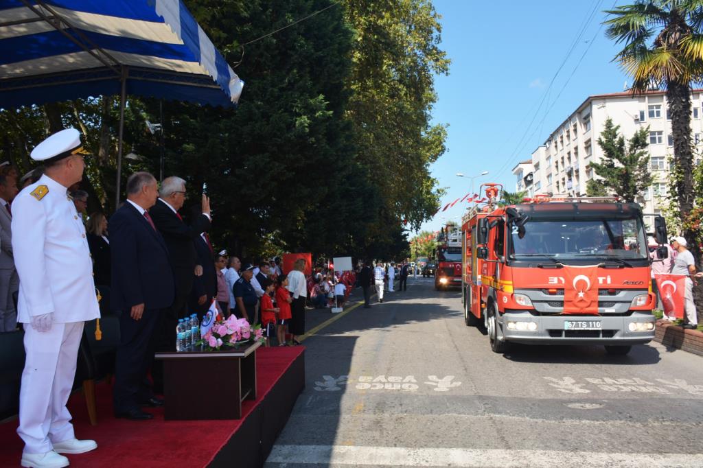 Kutlamalar, Devrim Bulvarı üzerinde düzenlenen Kutlama Töreni ile devam etti. Bu kapsamda İlçe Kaymakamı İsmail Çorumluoğlu, Karadeniz Bölge ve Garnizon Komutanı Tuğamiral Hüseyin Sami Uyar ve Belediye Başkanı Halil Posbıyık, halkın, gazilerin ve askeri birliklerin bayramını kutladı.
