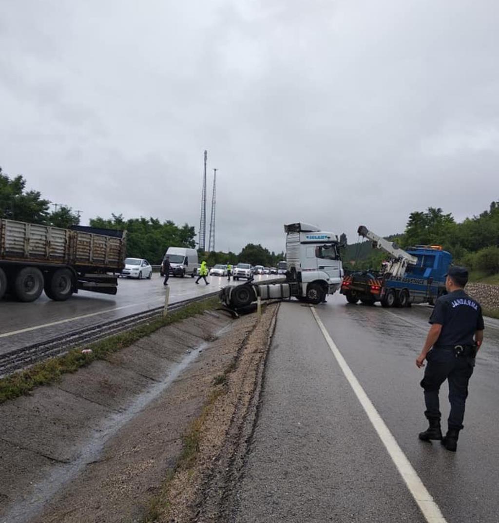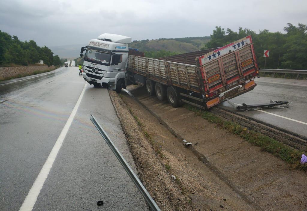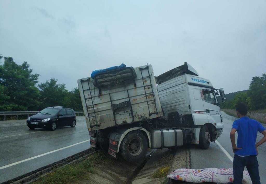 Edinilen bilgiye göre, Eskipazar istikametinden Karabük istikametine giden M.K. (26) idaresindeki 47 DR 133 plakalı tır, sürücünün direksiyon hakimiyetini kaybetmesi sonucu Söğütlüçeşme mevkiinde trafik işaret levhasına çarparak refüje düştü. Kazada M.K. yaralandı. İhbar üzerine olay yerine trafik polisleri ve sağlık ekipleri sevk edilirken, diğer sürücüler araçtan çıkardıkları yaralının üzerini yorganla örterek yağmurdan korumaya çalıştı. Sağlık ekiplerinin ilk müdahalesinin ardından yaralı sürücü Karabük Eğitim ve Araştırma Hastanesine kaldırıldı.