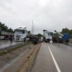 Karabük’ün Eskipazar ilçesinde trafik levhasına çarparak refüje düşen tırın sürücüsü yaralandı. Yoldan geçen diğer sürücüler, araçtan çıkardıkları yaralıyı yağmurdan korumak için üzerine yorgan örttü.