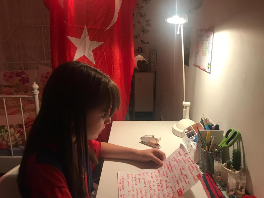 Herne şehrinde yaşayan Karabüklü gurbetçi ailenin kızı Ecrin İnam, "Gurbetten Mehmetçik’e mektup" başlığıyla kaleme aldığı mektupta, Mehmetçik'e başarılar diledi. Mehmetçik için dua da eden İnam, mektubunda duygularını şöyle aktardı: